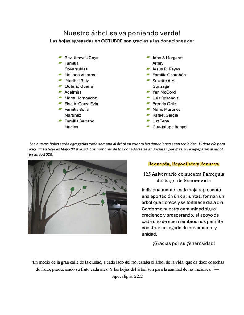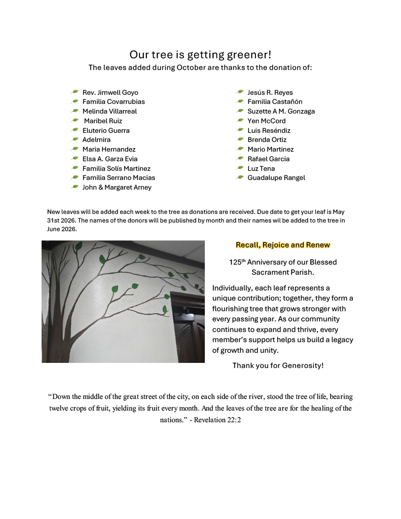 Blessed Sacrament Catholic Parish is a Texas nonprofit corporation and 501(c)(3) tax-exempt charitable organization.